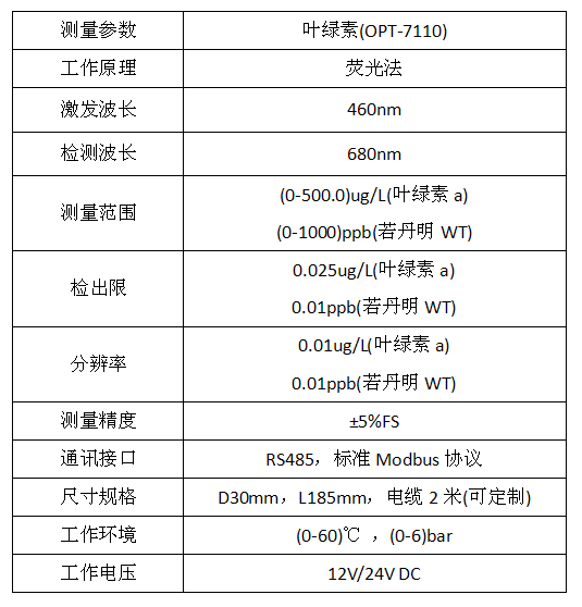 水體中葉綠素的濃度反映了浮游植物的含量,監(jiān)測水中葉綠素的含量可判定水體富營養(yǎng)化程度,預(yù)警水質(zhì)污染和水貨、赤潮的發(fā)生。